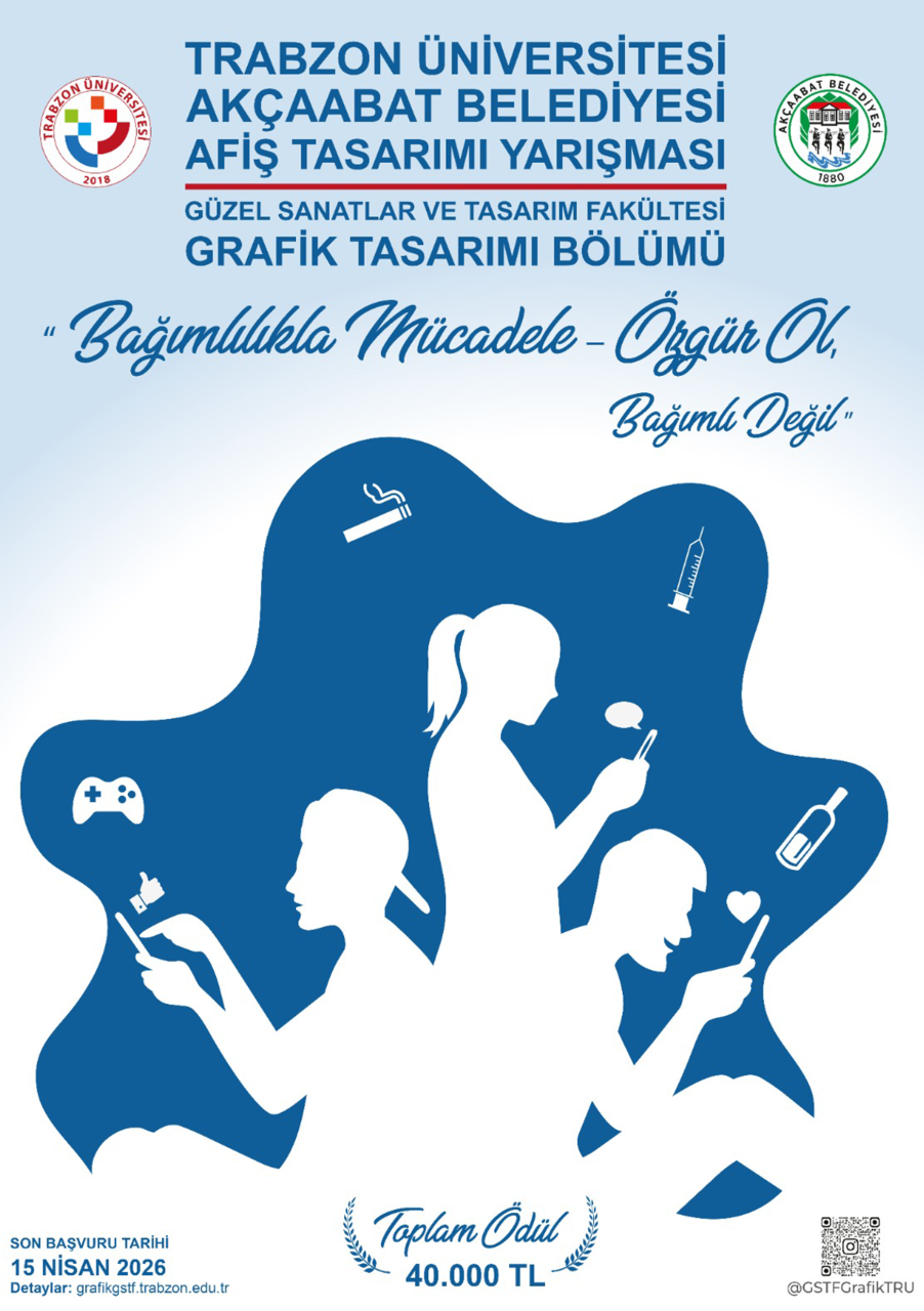 Trabzon Üniversitesi ve Akçaabat Belediyesi ortaklığında, Güzel Sanatlar ve Tasarım Fakültesi - Grafik Tasarımı Bölümü tarafından “Bağımlılıkla Mücadele – Özgür Ol, Bağımlı Değil” teması çerçevesinde afiş çalışmalarının ortaya konulması amacıyla bir afiş tasarımı yarışması düzenlenmektedir.