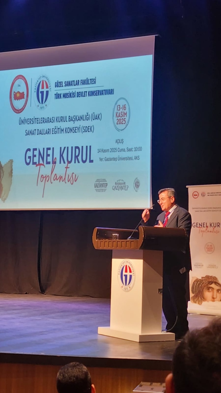 ÜAK Sanat Dalları Eğitim Konseyi (SDEK) Genel Kurul Toplantısı, 13–16 Kasım tarihlerinde Gaziantep Üniversitesi Güzel Sanatlar Fakültesi ve Türk Musikisi Devlet Konservatuvarı ev sahipliğinde, Fakültemiz Dekanı Prof. Dr. Raif Kalyoncu’nun katılımıyla yapıldı. Türkiye’deki güzel sanatlar fakülteleri ve konservatuvarların akademik yapılanmaları ile sanat eğitiminin geliştirilmesine yönelik konuların ele alındığı toplantı, kurumlar arası iş birliğinin güçlendirilmesine önemli katkı sağladı.